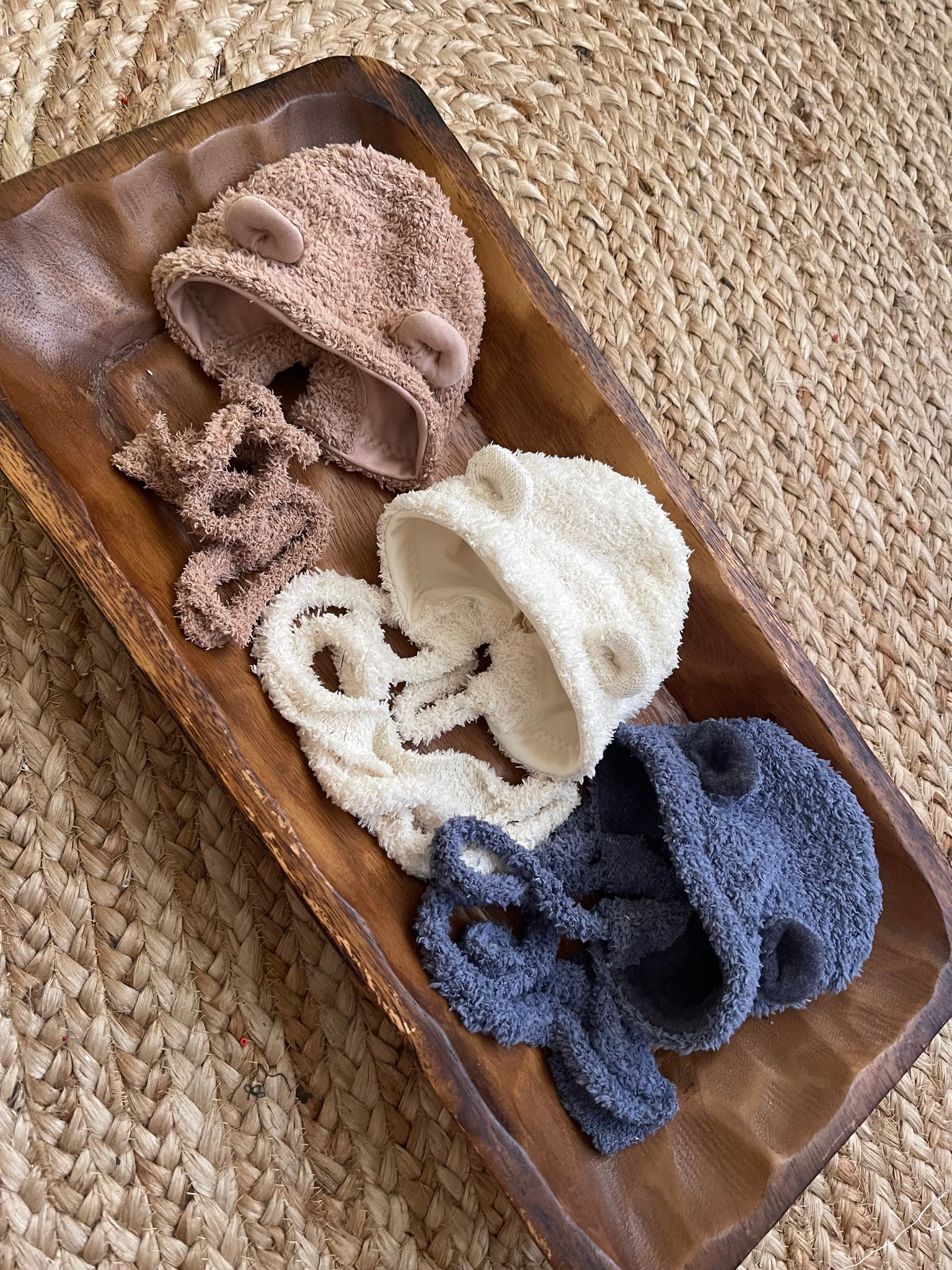 Beautiful Bear set. Bonnet, leg warmer and wrap.