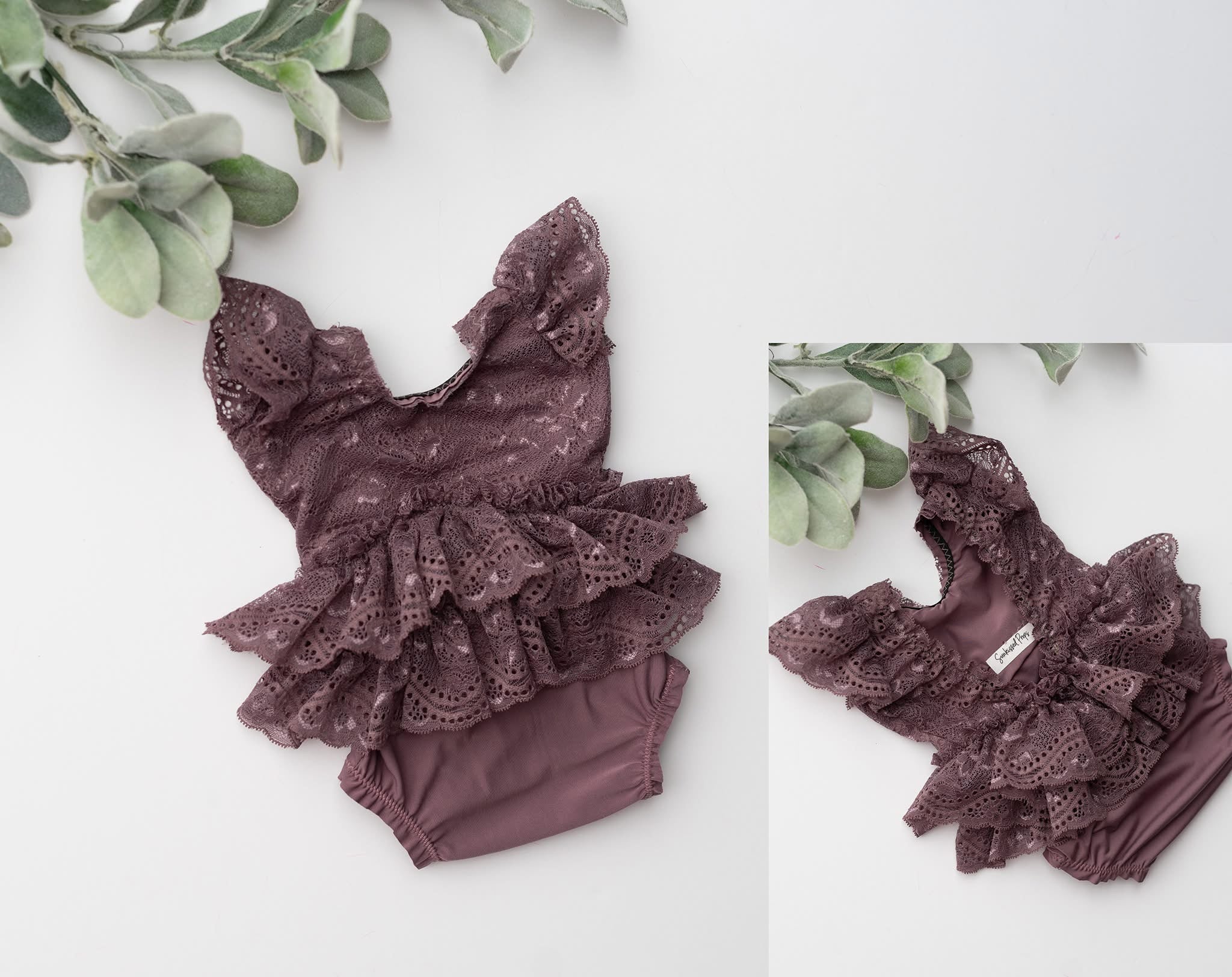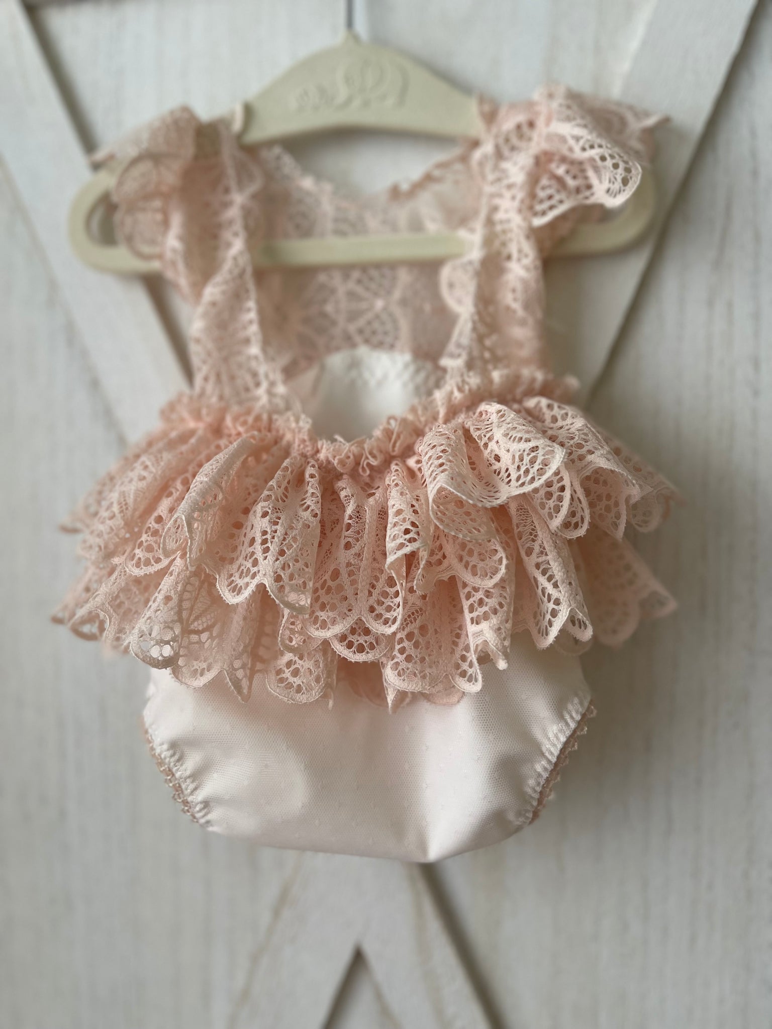 Beautiful lace romper. With V back and two ruffle layers skirt.