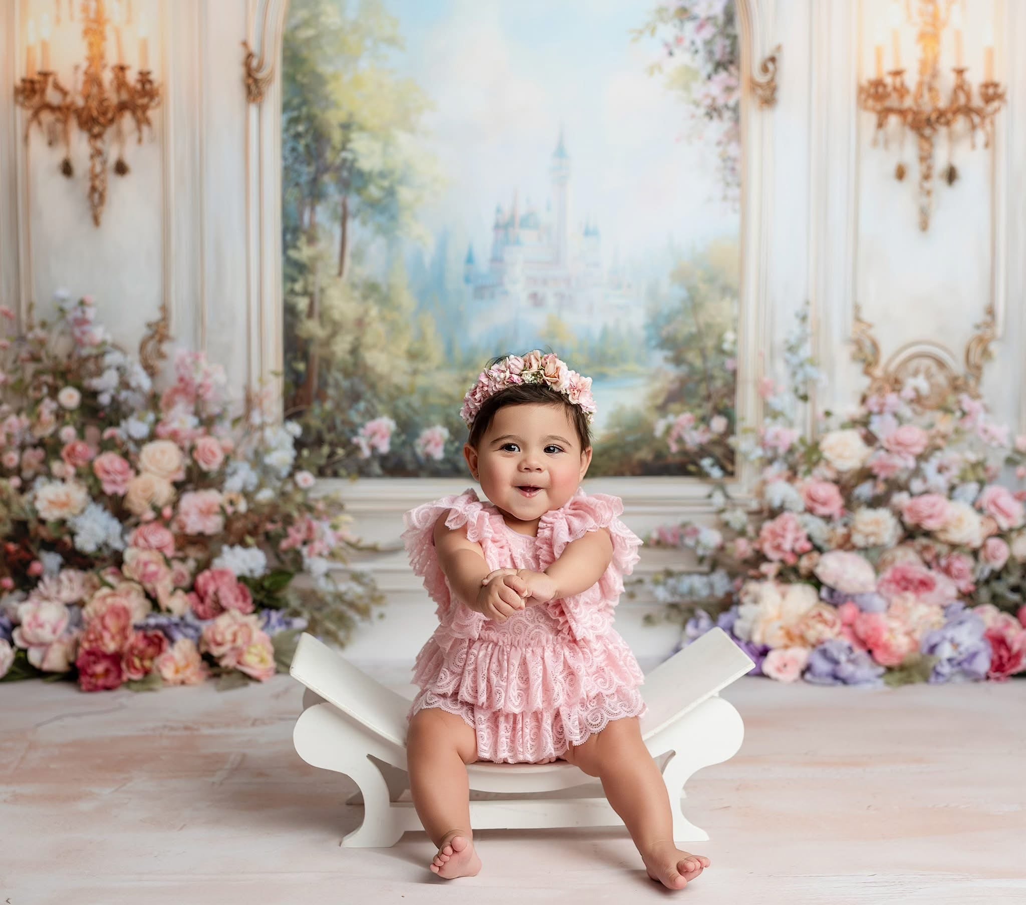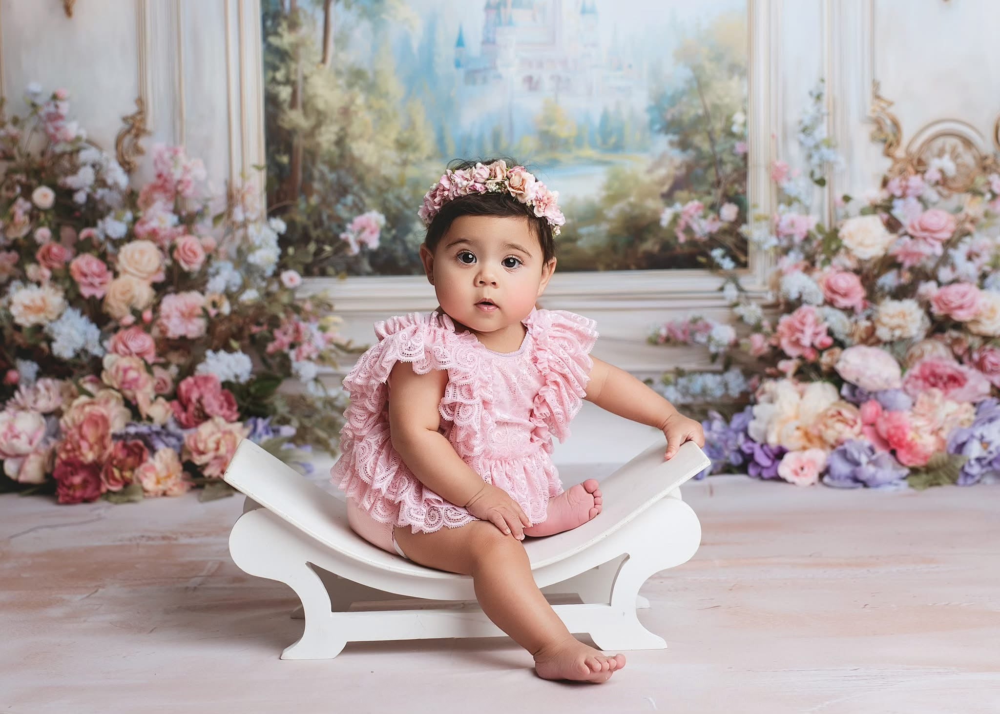 Paired with pink floral halo for a perfect set.